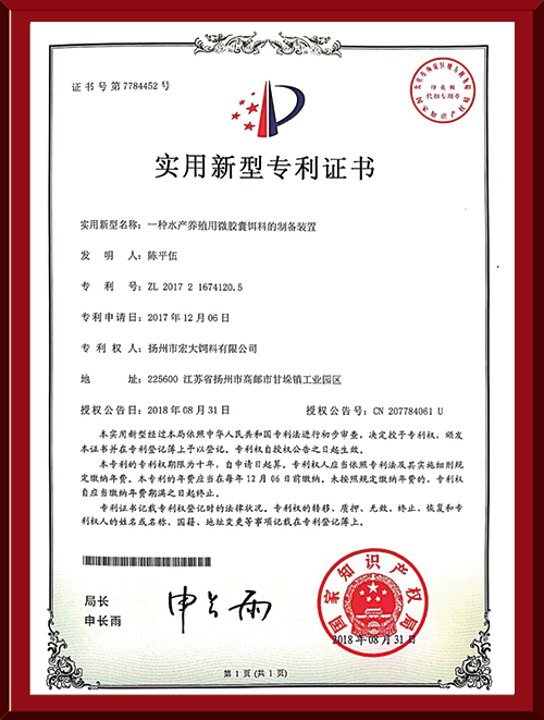 本公司技術(shù)力量雄厚,依托中國水產(chǎn)科學(xué)院無錫淡水研究中心、上海水產(chǎn)大學(xué)和揚(yáng)州大學(xué)動物科技院等科研院校為協(xié)作單位,常年聘用多名知名教授擔(dān)任技術(shù)顧問。目前公司有教授5名、碩士3名,具備大專以上學(xué)歷占70%,公司以其先進(jìn)的技術(shù),先進(jìn)的生產(chǎn)工藝設(shè)備、先進(jìn)的生產(chǎn)管理、先進(jìn)的飼料品質(zhì)及成熟的技術(shù)服務(wù)在樹立強(qiáng)勢品牌、贏得全國廣大養(yǎng)殖戶青睞的同時,先后榮獲江蘇省飼料質(zhì)量合格產(chǎn)品、江蘇省名牌產(chǎn)品、揚(yáng)州市消費(fèi)者滿意商品、揚(yáng)州市質(zhì)量計量信得過產(chǎn)品、揚(yáng)州市優(yōu)秀企業(yè)和揚(yáng)州市農(nóng)林局“放心飼料”“江蘇省農(nóng)業(yè)龍頭企業(yè)”等稱號,并于2006年度通過了ISO9001質(zhì)量體系論證。